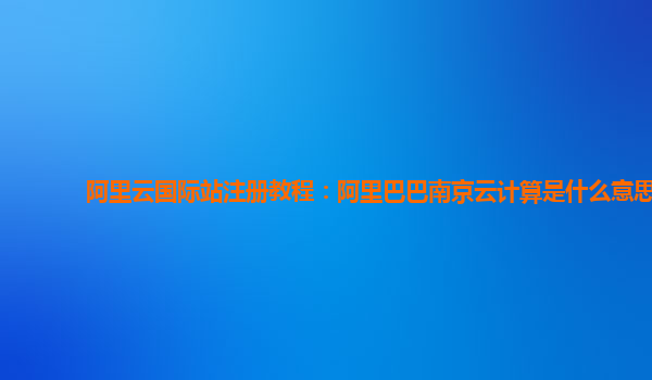 阿里云国际站注册教程:阿里巴巴南京云计算的优势与应用