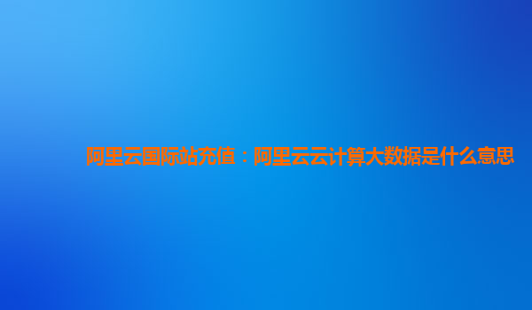 阿里云国际站充值:阿里云云计算大数据是什么意思