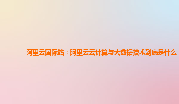 阿里云云计算与大数据技术到底是什么?