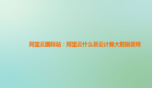 阿里云国际站:阿里云什么是云计算与大数据?