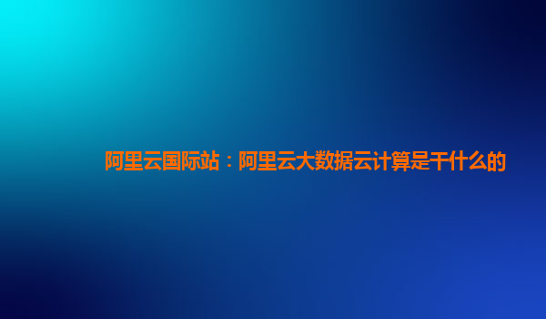 阿里云国际站:阿里云大数据云计算是干什么的