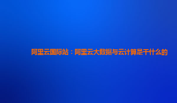 阿里云国际站:阿里云大数据与云计算是干什么的