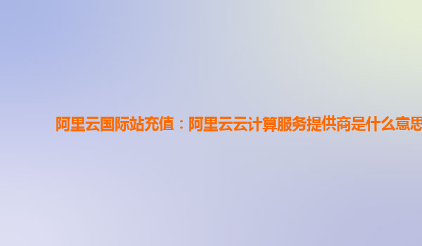 阿里云国际站充值:了解阿里云云计算服务提供商的优势