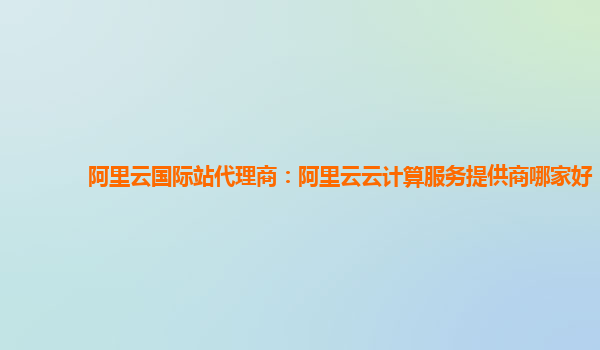 阿里云国际站代理商:阿里云云计算服务提供商哪家好?