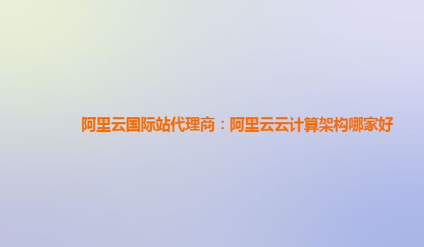 阿里云国际站代理商:阿里云云计算架构哪家好