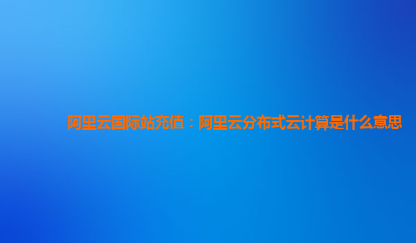 阿里云国际站充值:阿里云分布式云计算是什么意思