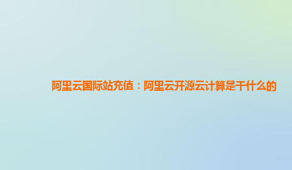阿里云国际站充值:阿里云开源云计算是干什么的