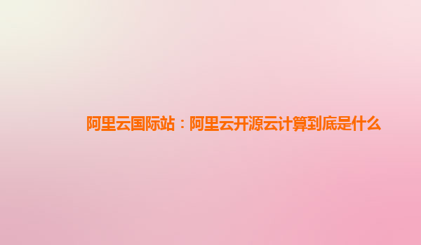 阿里云国际站:阿里云开源云计算到底是什么