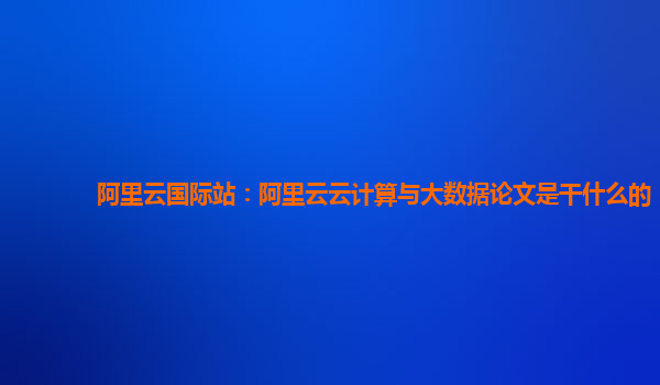 阿里云国际站:阿里云云计算与大数据论文是干什么的