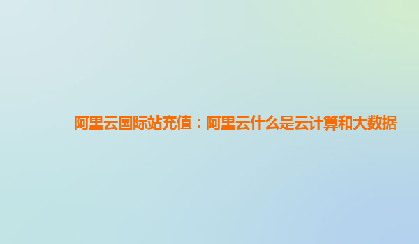 阿里云国际站充值:阿里云什么是云计算和大数据