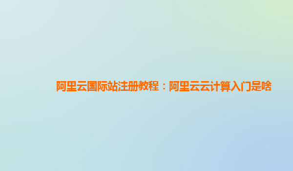阿里云国际站注册教程:阿里云云计算入门是啥