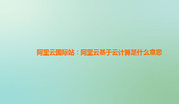 阿里云国际站:云计算的未来