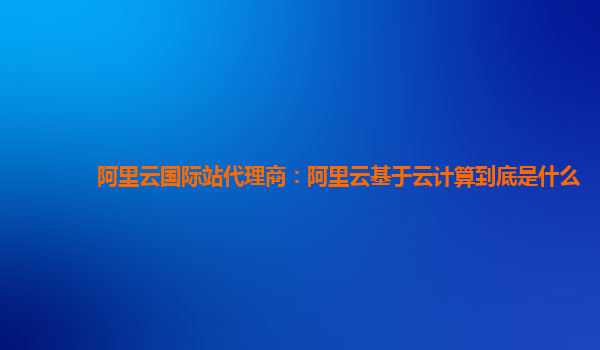 阿里云国际站代理商:阿里云基于云计算到底是什么