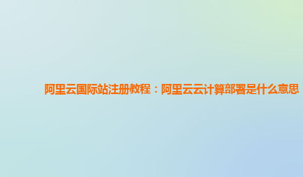 阿里云国际站注册教程:阿里云云计算部署是什么意思