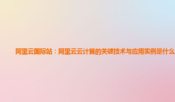 阿里云国际站:阿里云云计算的关键技术与应用实例