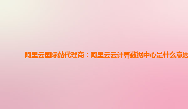 阿里云国际站代理商:阿里云云计算数据中心是什么意思