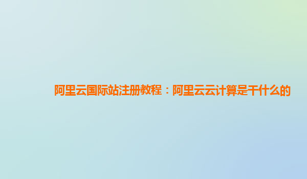 阿里云国际站注册教程及阿里云云计算优势介绍