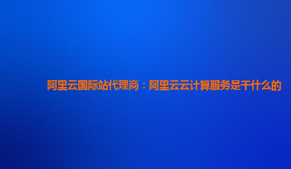 阿里云国际站代理商:阿里云云计算服务是干什么的