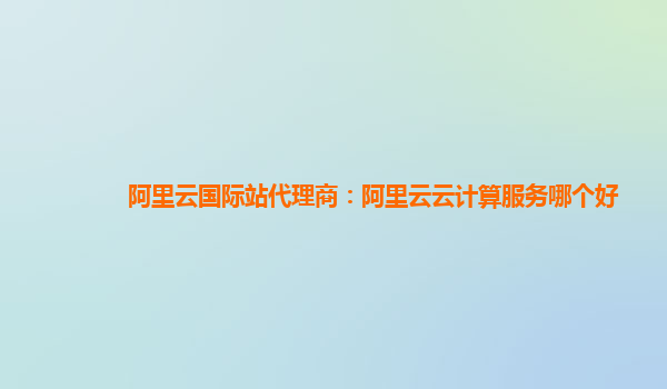 阿里云国际站代理商:阿里云云计算服务哪个好?