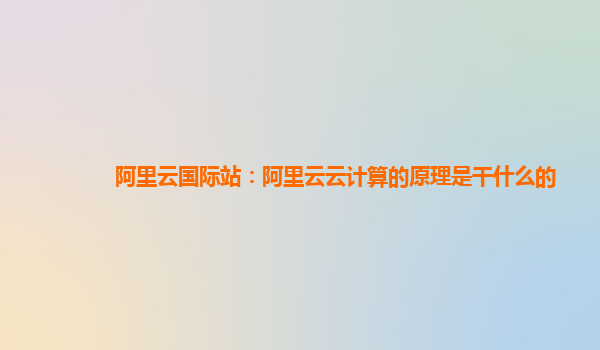 阿里云国际站:阿里云云计算的原理与优势