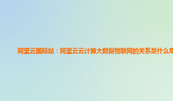 阿里云国际站:阿里云云计算、大数据与物联网的关系解析