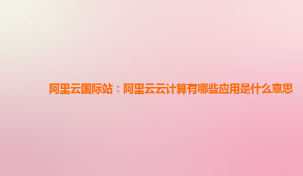 阿里云国际站:阿里云云计算有哪些应用?