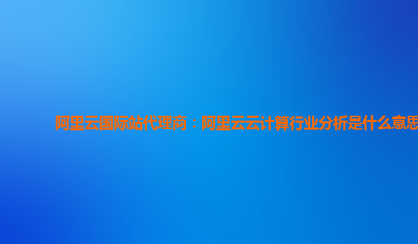 阿里云国际站代理商:阿里云云计算行业分析