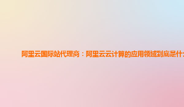阿里云国际站代理商:阿里云云计算的应用领域到底是什么
