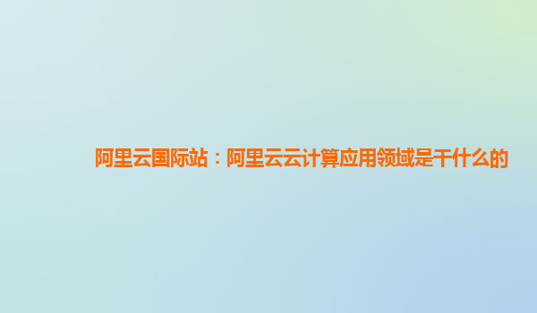 阿里云国际站:阿里云云计算应用领域是干什么的