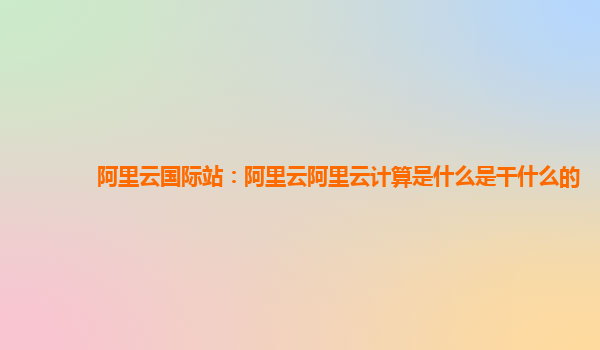 阿里云国际站:阿里云计算是什么?它是干什么的?