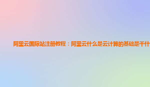 阿里云国际站注册教程:阿里云是什么,云计算基础及其优势