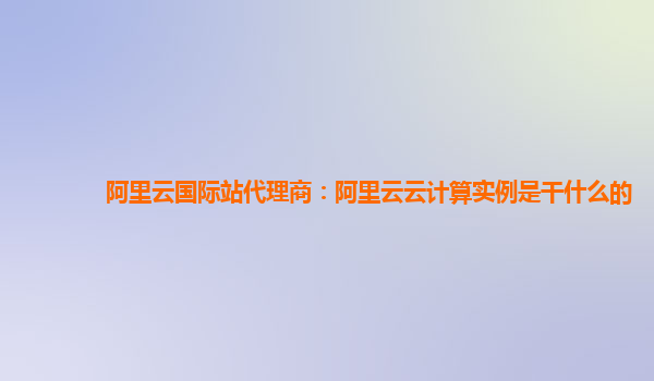 阿里云国际站代理商:阿里云云计算实例是干什么的