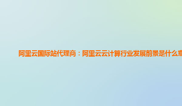 阿里云国际站代理商:阿里云云计算行业发展前景