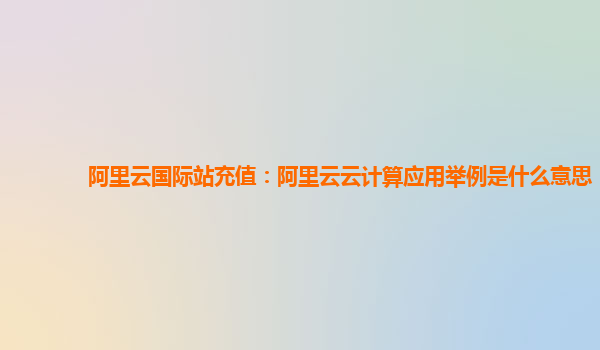 阿里云国际站充值与云计算应用举例解析