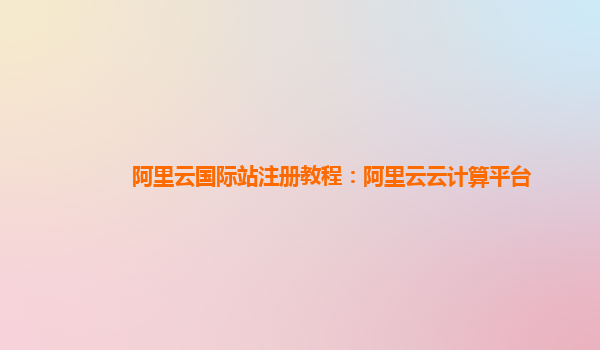 阿里云国际站注册教程:阿里云云计算平台
