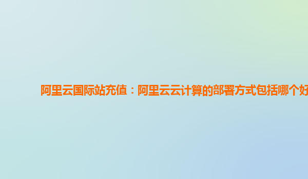 阿里云国际站充值:阿里云云计算的部署方式包括哪个好