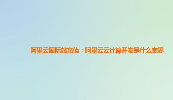 阿里云国际站充值:阿里云云计算开发是什么意思