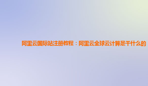 阿里云国际站注册教程:阿里云全球云计算的优势与应用