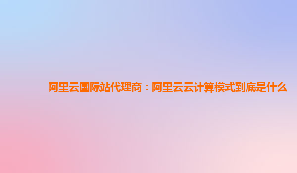 阿里云国际站代理商:阿里云云计算模式到底是什么