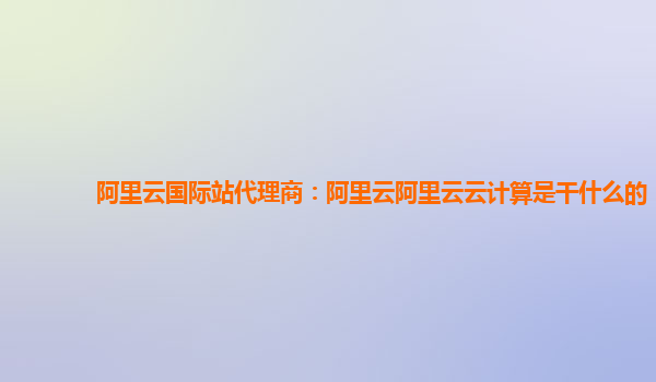 阿里云国际站代理商:阿里云云计算的优势与应用