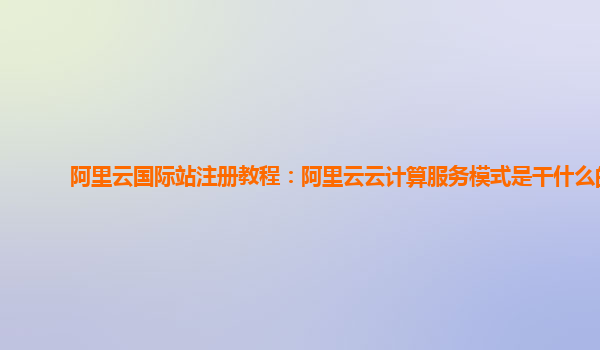 阿里云国际站注册教程:阿里云云计算服务模式是干什么的