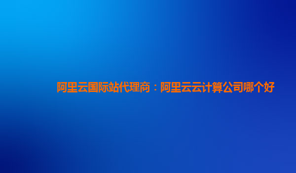 阿里云国际站代理商:阿里云云计算公司哪个好