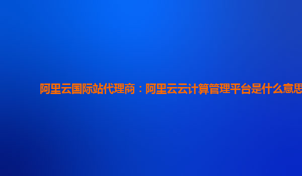 什么是阿里云云计算管理平台?