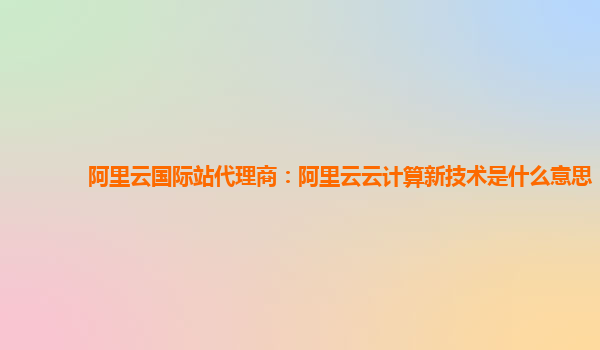 阿里云国际站代理商:阿里云云计算新技术是什么意思