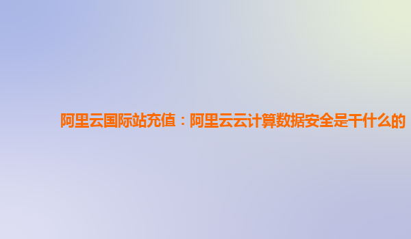 阿里云国际站充值:阿里云云计算数据安全是干什么的