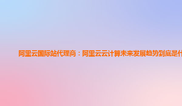 阿里云国际站代理商:阿里云云计算未来发展趋势