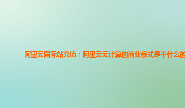 阿里云国际站充值:阿里云云计算的商业模式是干什么的