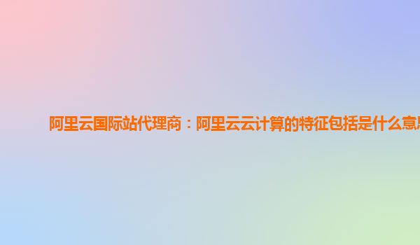 阿里云国际站代理商:阿里云云计算的特征包括
