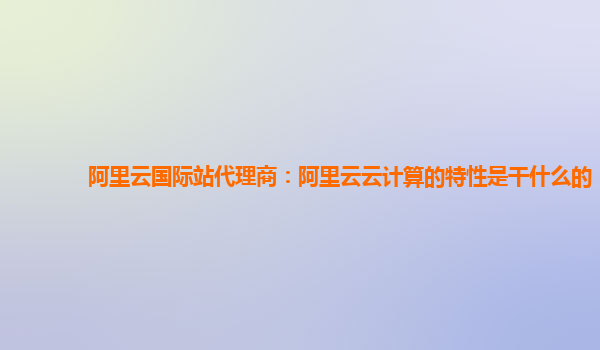 阿里云国际站代理商:阿里云云计算的特性与优势