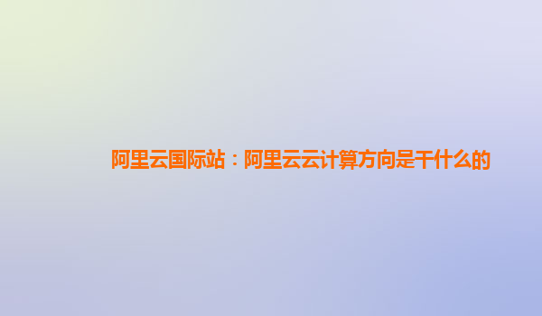 阿里云国际站:阿里云云计算方向是干什么的